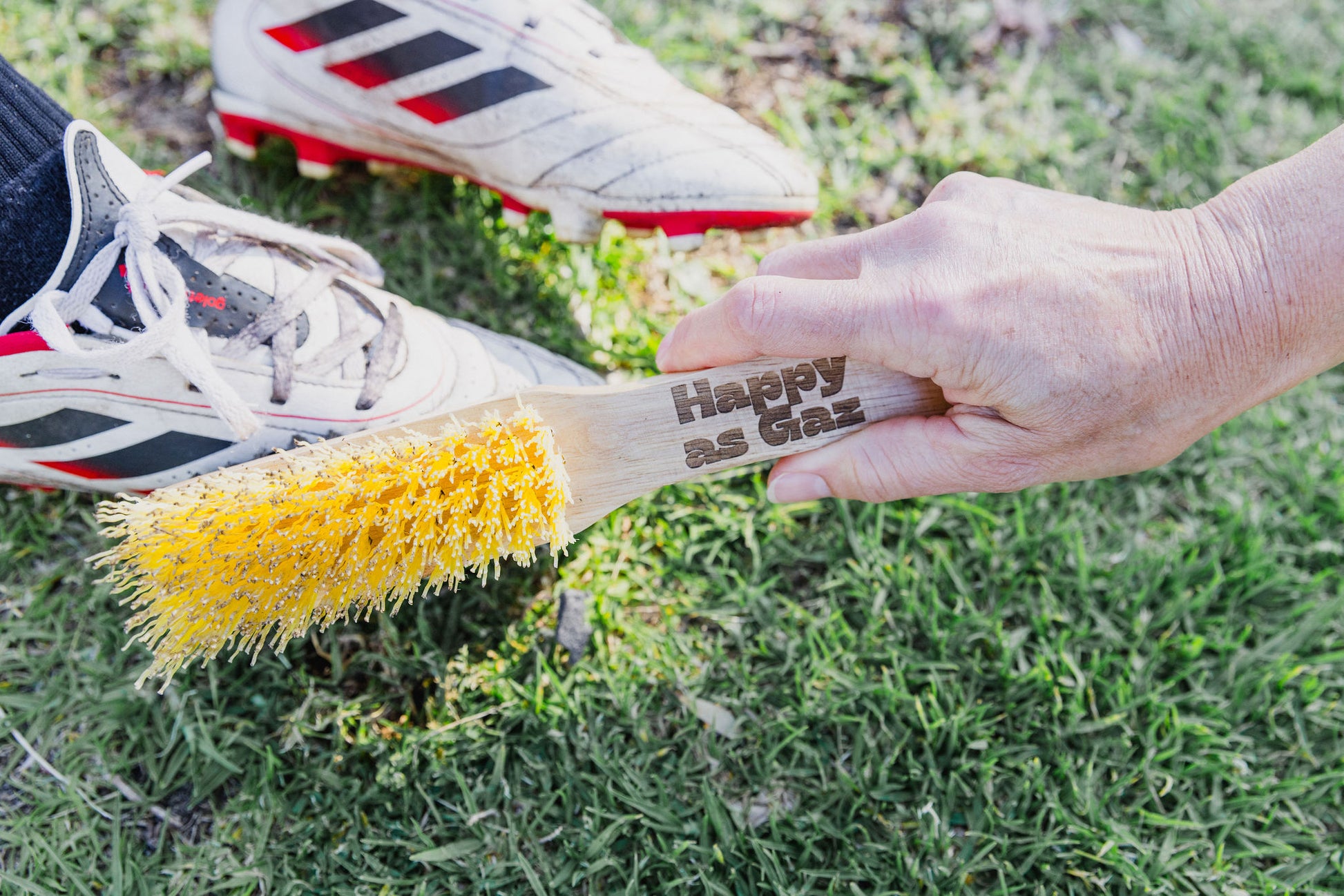 Say g'day to the dual muddy good brush built for game and training day, muddy trails and grassy chaos. This sports boot brush has hard yellow bristles on one side, it tackles the tough stuff- dried mud, sand and stubborn debris stuck to the boot. Flip it over and you've got soft black bristles for the gentle touch- perfect for the brushing off grass clippings, dust and light stuff from the top of your boots.